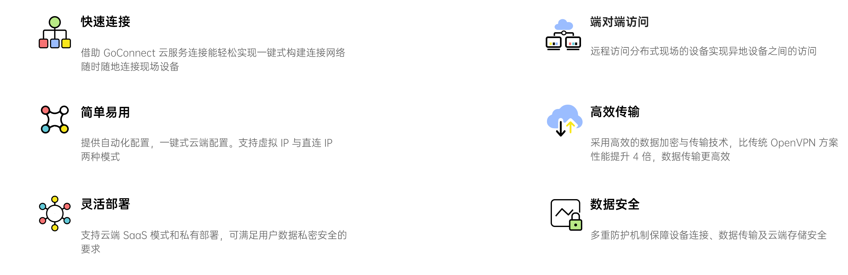 銳谷智聯 GoConnect 連接云平臺,是一種易用且安全的多功能聯網解決方案。支持通過互聯網將工業應用的現場設備、工程師和應用程序服務器無縫橋接。通過 GoConnect 用戶可以自由的選擇訪問現場的工控機、服務器、攝像機、PLC等各種終端設備,實現遠程維護、遠程診斷和監控,同時為物聯網大數據采集、傳輸和分析提供可靠的、安全的數據匯聚服務。